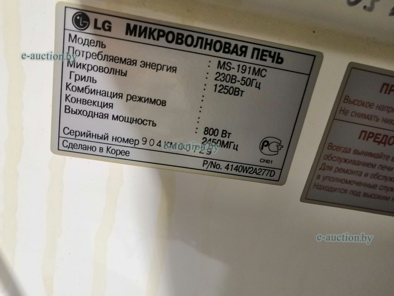 Микроволновая печь LG MS-191MC