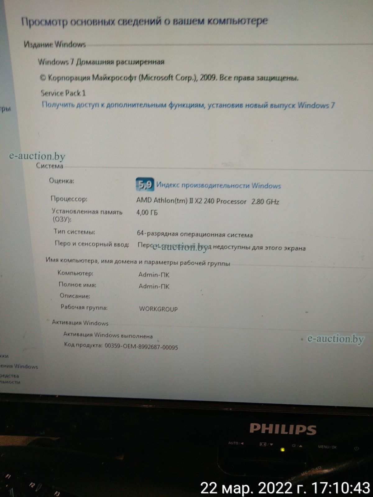 | Б/у. Монитор Philips, системный блок, клавиатура, мышь. ОЗУ 4Гб, Nvidia9800, AMDx2 2.8Ггц. | |