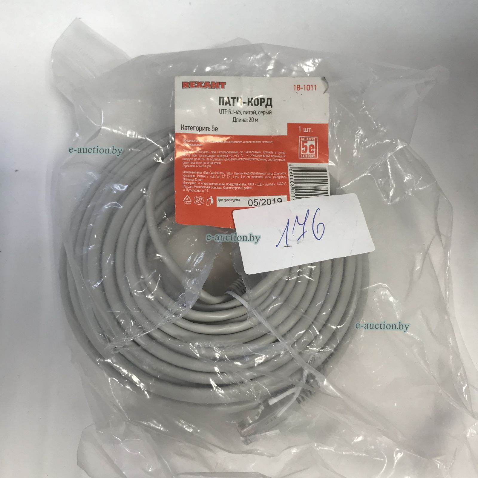 Патч-корд UTP 5e кат. литой 20М СЕРЫЙ REXANT арт.18-1011