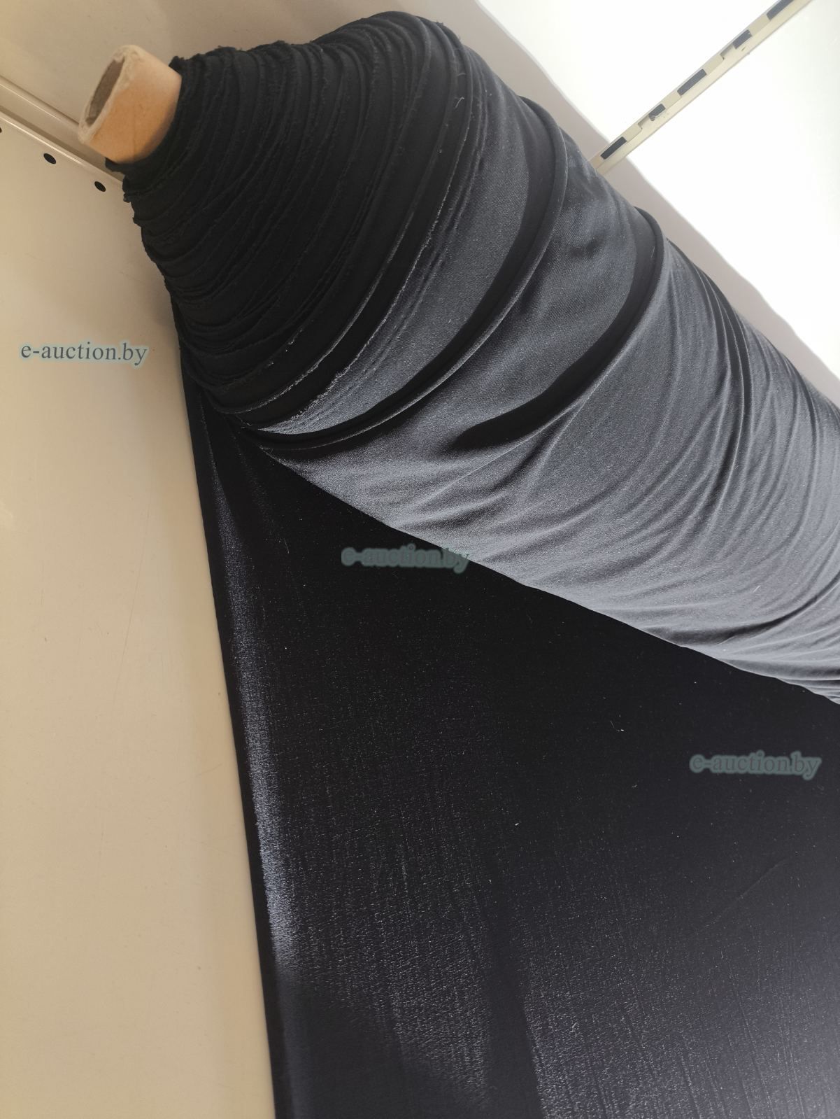 Ткань, полотно трикотажное тонкое, черное (рулон), 53 м.п.
