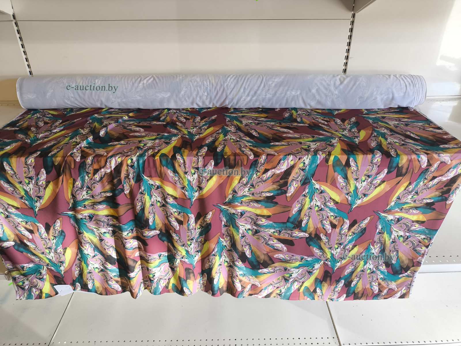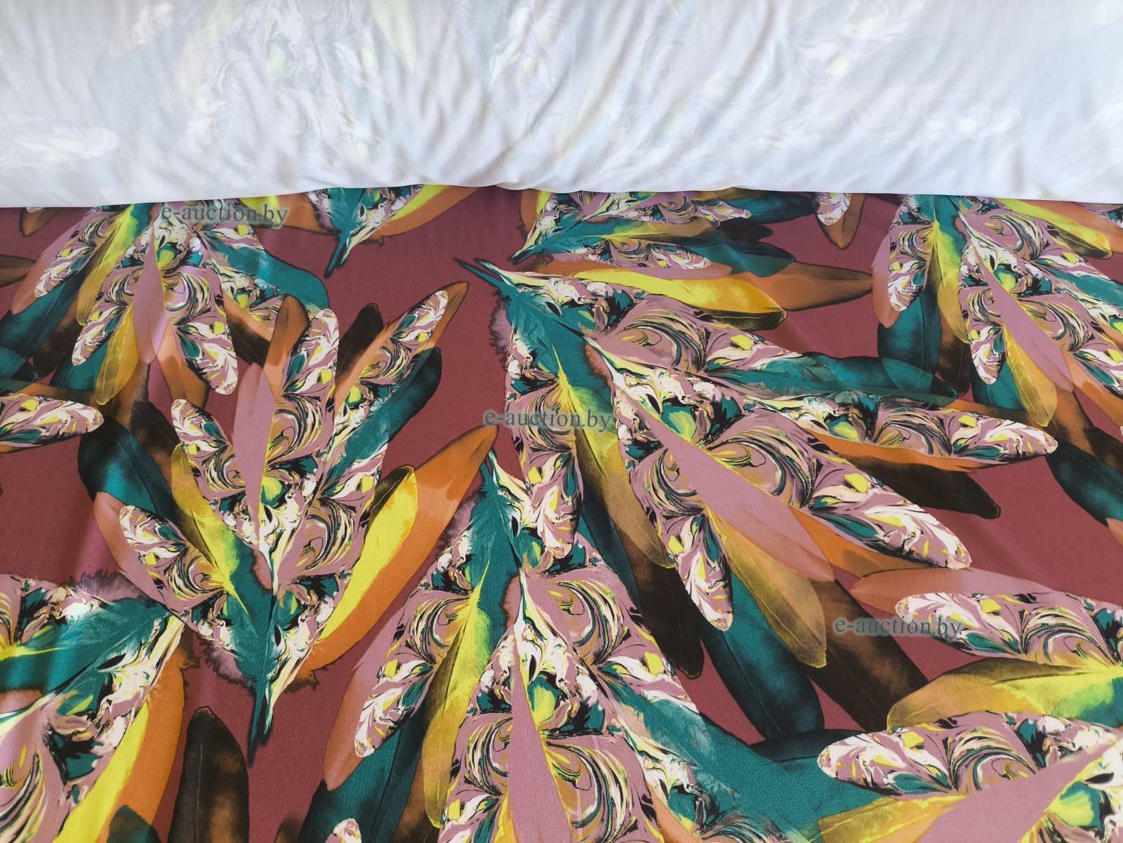 Ткань, полотно трикотажное, масло принт цветные перья (рулон), 21 м.п.