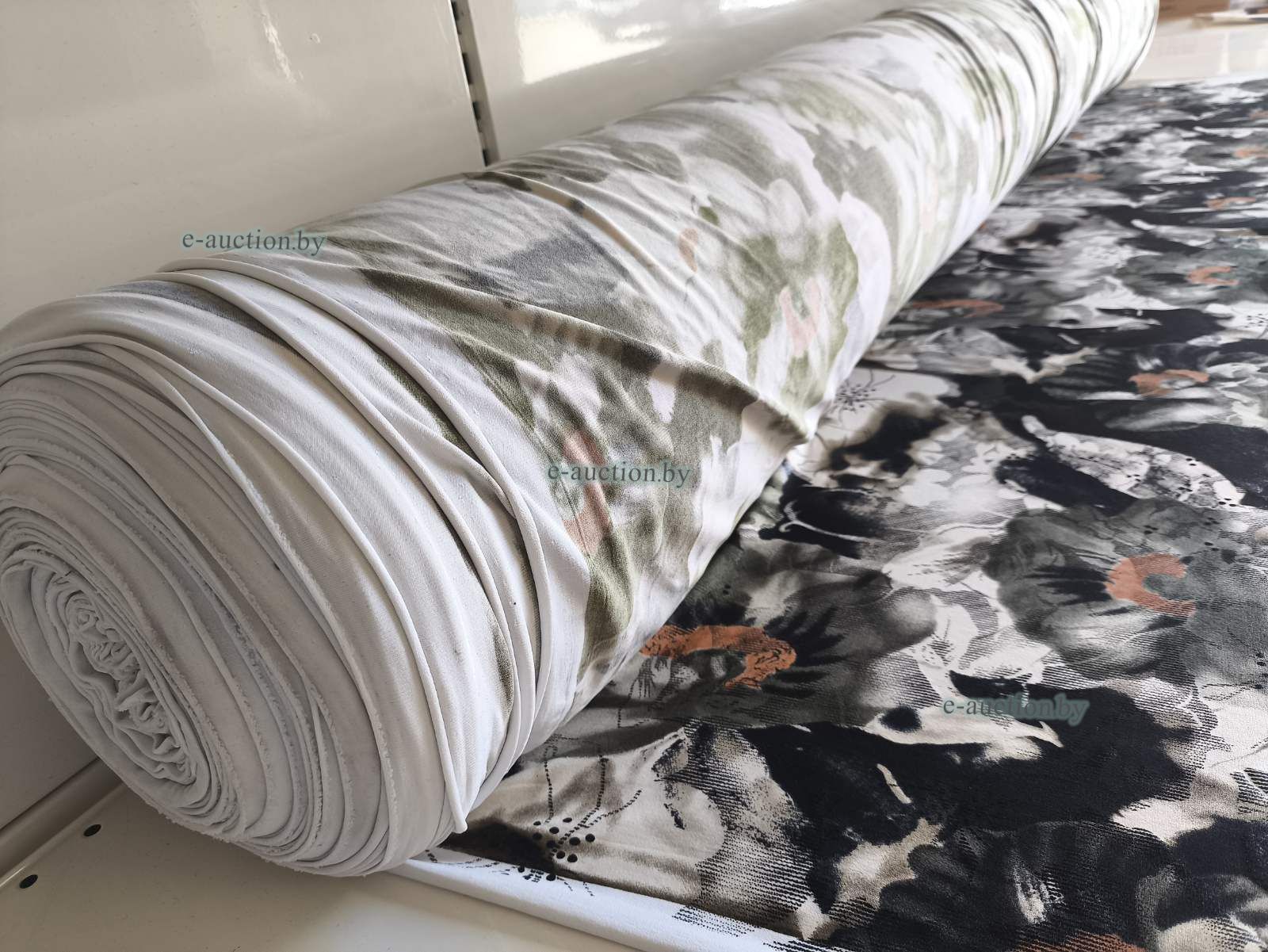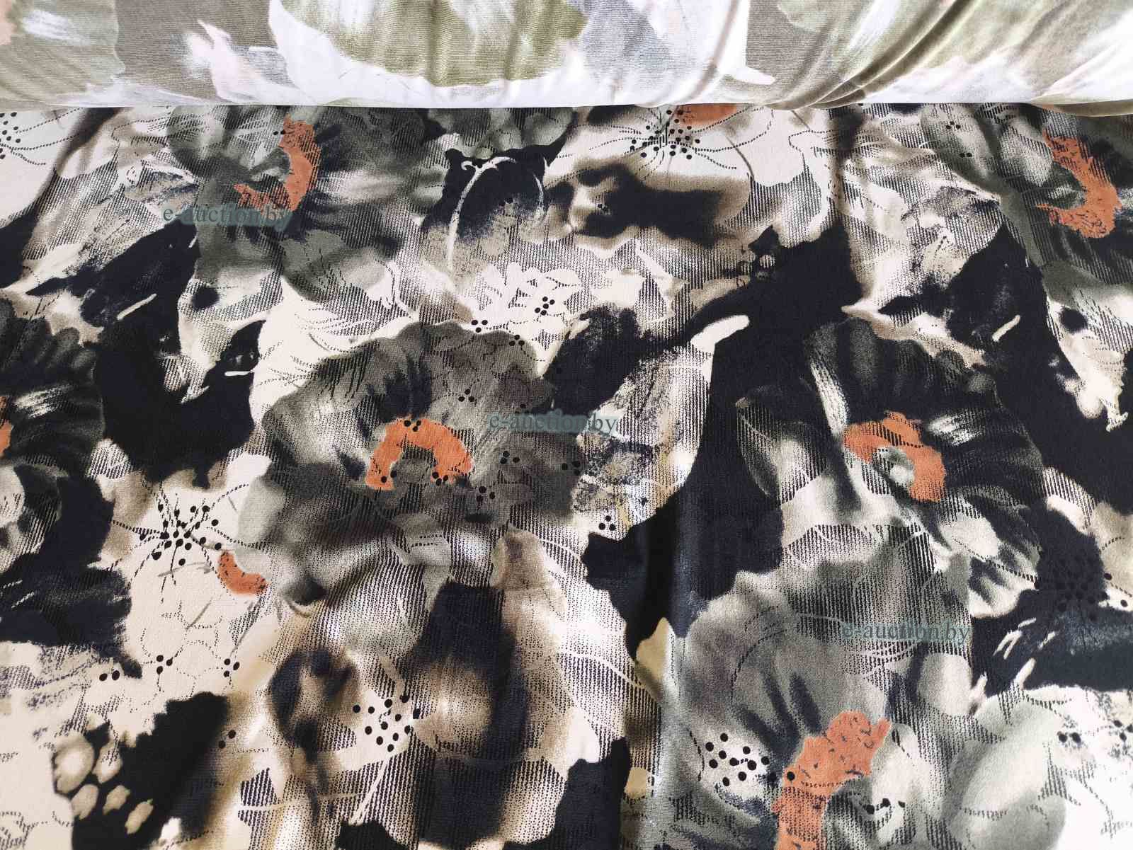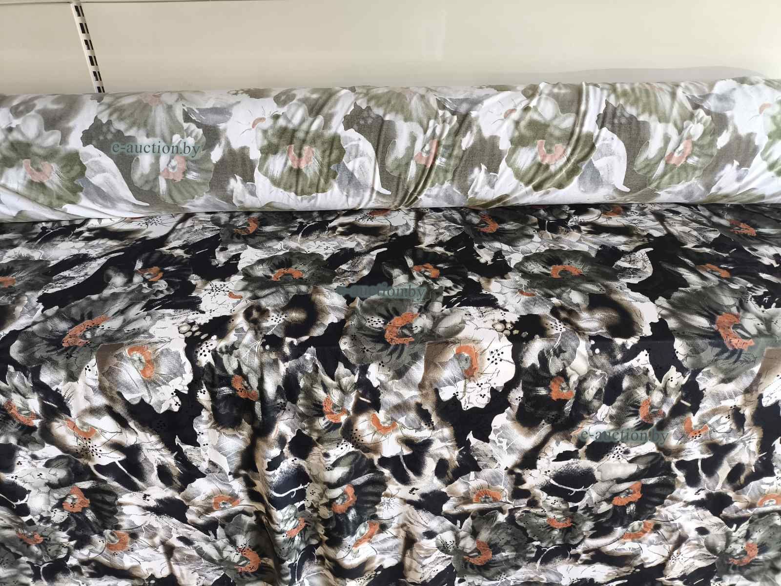Ткань, полотно трикотажное тонкое, беж с цветами (рулон), 68,50 м.п.