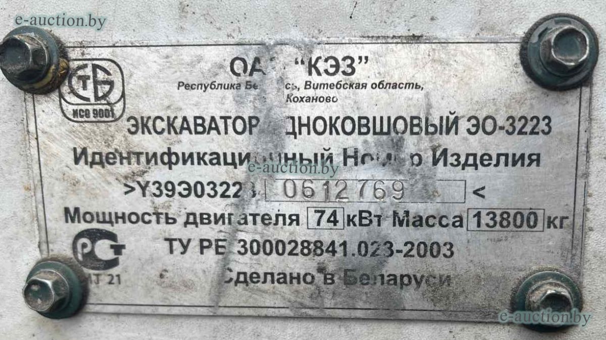 Рег. знак ЕК-3 0880 Зав. №Y39ЭО32230612769 Имеются повреждения лакокрасочного покрытия, коррозия. При инструментальном контроле, диагностике, разборке возможно выявление скрытых дефектов и неисправностей. |