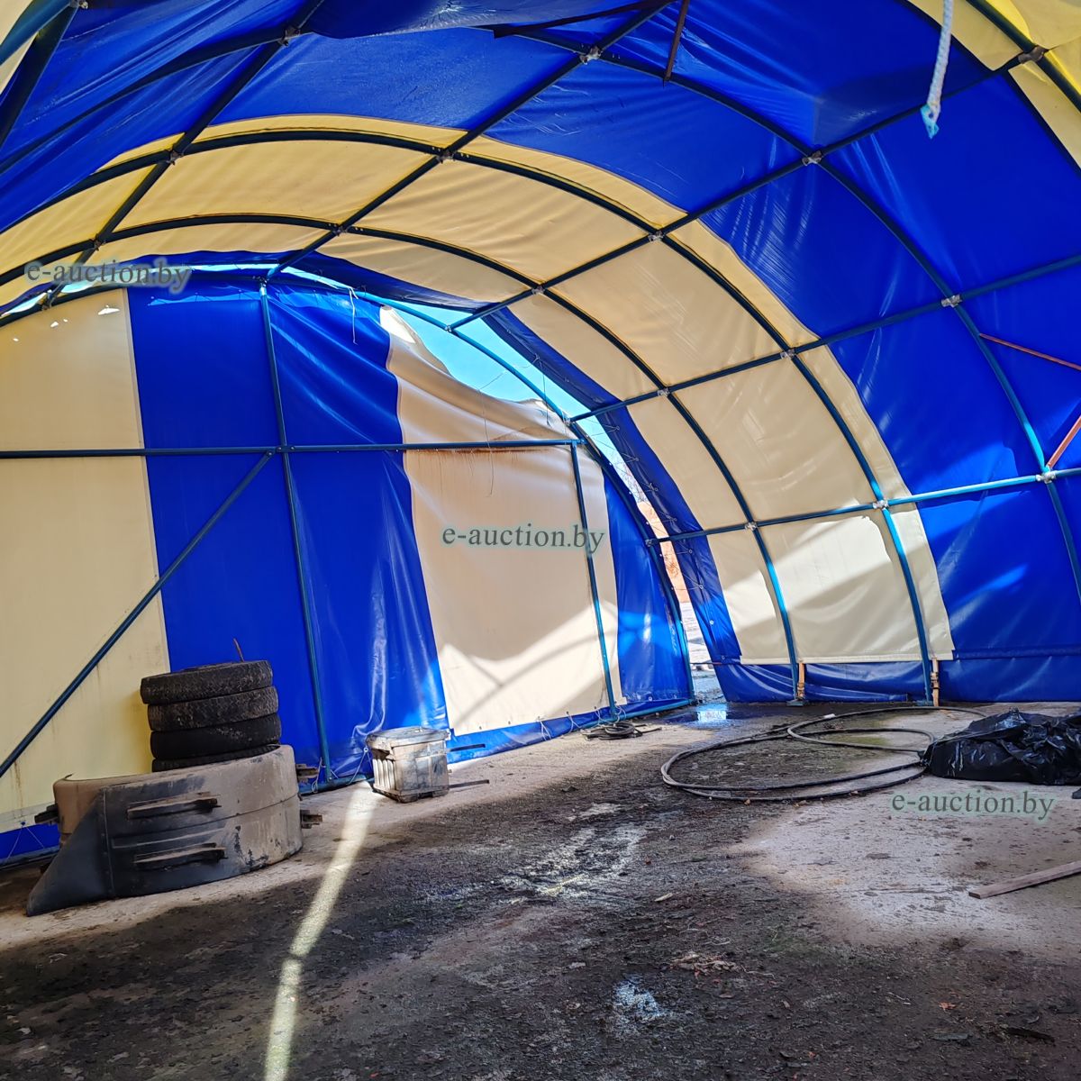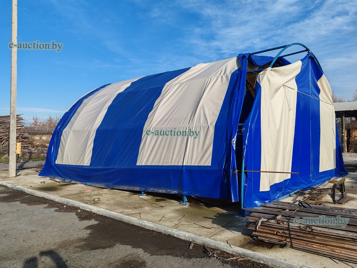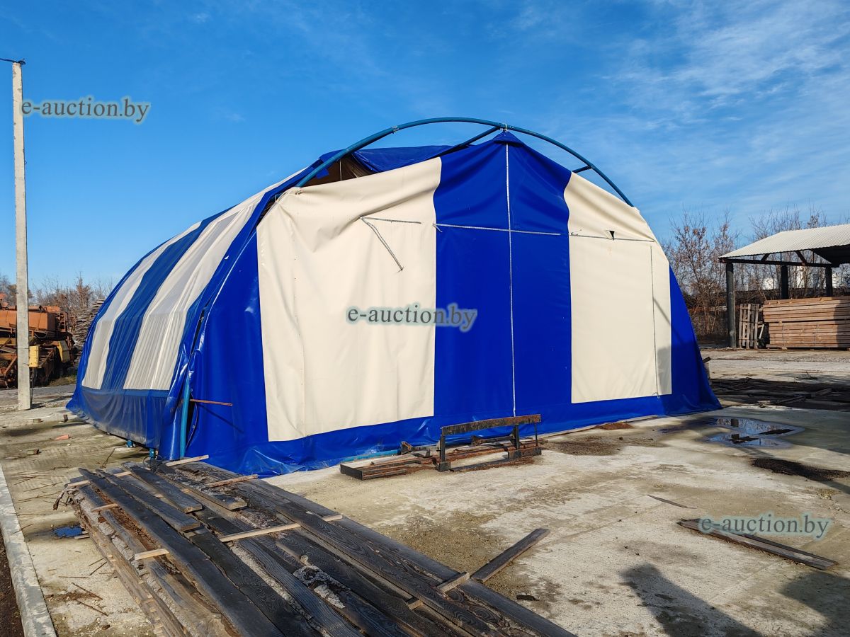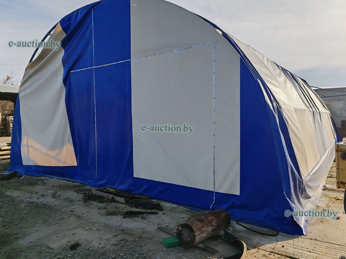 Арочный ангар сборный, изготовлен из одинарной трубы диаметром 50 мм с покрытием тентовой тканью. Размер 9x9 м. Крепление к бетонной площадке анкерными болтами. |