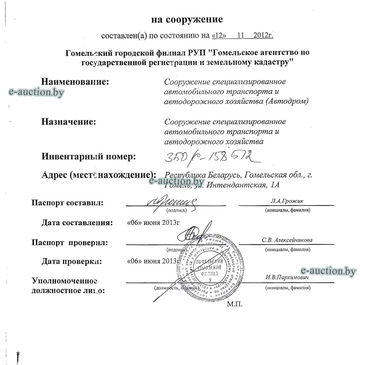 | Местоположение имущества | г. Гомель, ул. Интендантская, 1Г |