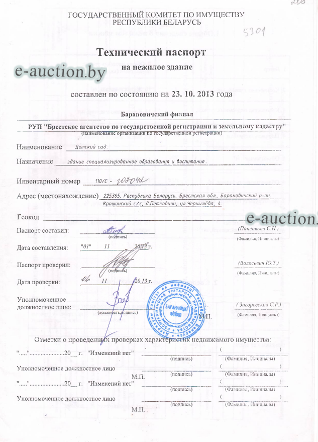 | Местоположение имущества | Брестская область, Барановичский р-н, Крошинский с/с, д. Петковичи, ул. Чернышёва, 4 |