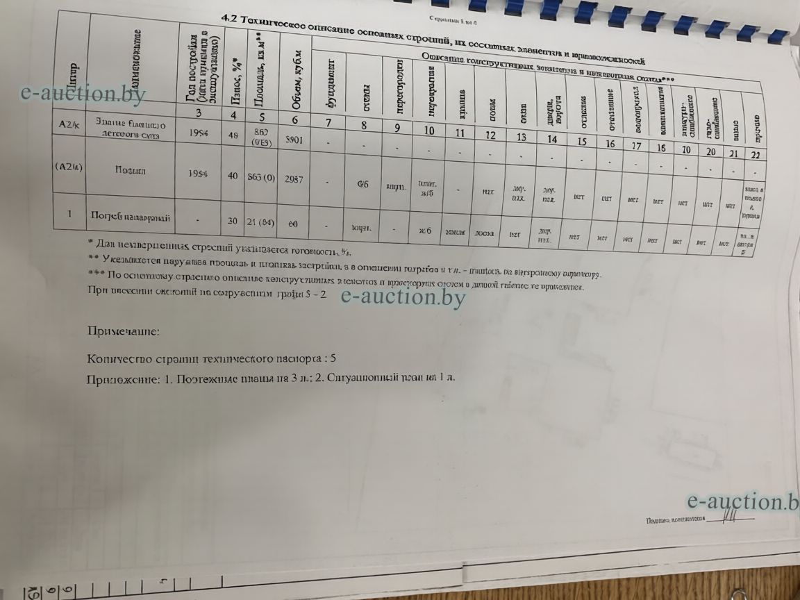 Сведения о капитальном строении из ЕГРНИ: Инвентарный номер: 240/C-46296 Адрес (местоположение): Витебская обл., Оршанский р-н, гп Ореховск, ул. Ленина, 72Б Общая площадь (протяженность): 1964.5 Наименование: Здание бывшего детского сада Назначение: Здание специализированное для образования и (или) воспитания Составные части и принадлежности: Подвал со входом, погреб надворный со входом Кадастровый номер земельного участка, на котором расположено капитальное строение: 223656200001000766 Право собственности (Собственность одного лица) Идентификационные сведения о правообладателе: Общество с ограниченной ответственностью "Наша Недвижимость", 193706973, 29.08.2023, УНП 193706973 Доля: 1/1 Сведения о земельном участке из ЕГРНИ: Кадастровый номер: 223656200001000766 Адрес (местоположение): Витебская обл., Оршанский р-н, гп Ореховск, ул. Ленина, 72Б Площадь (га): 0.6103 Целевое назначение земельного участка: Для обслуживания бывшего детского сада Инвентарные номера капитальных строений: 240/C-46296 Право собственности (Собственность одного лица) Идентификационные сведения о правообладателе: Республика Беларусь Доля: 1/1 Право аренды Идентификационные сведения о правообладателе: Общество с ограниченной ответственностью "Наша Недвижимость", 193706973, 29.08.2023, УНП 193706973 Доля: 1/1 Стоимость указана без НДС. |
