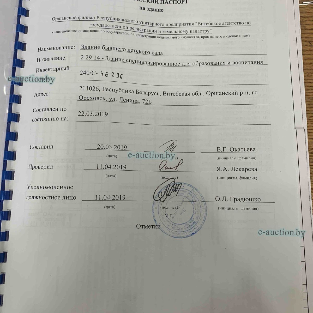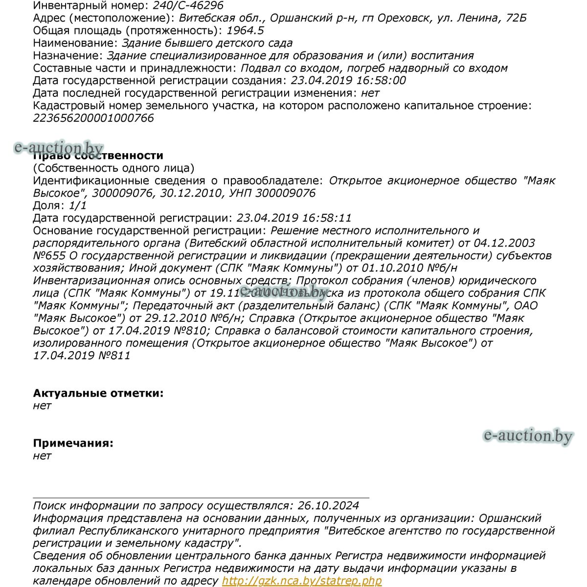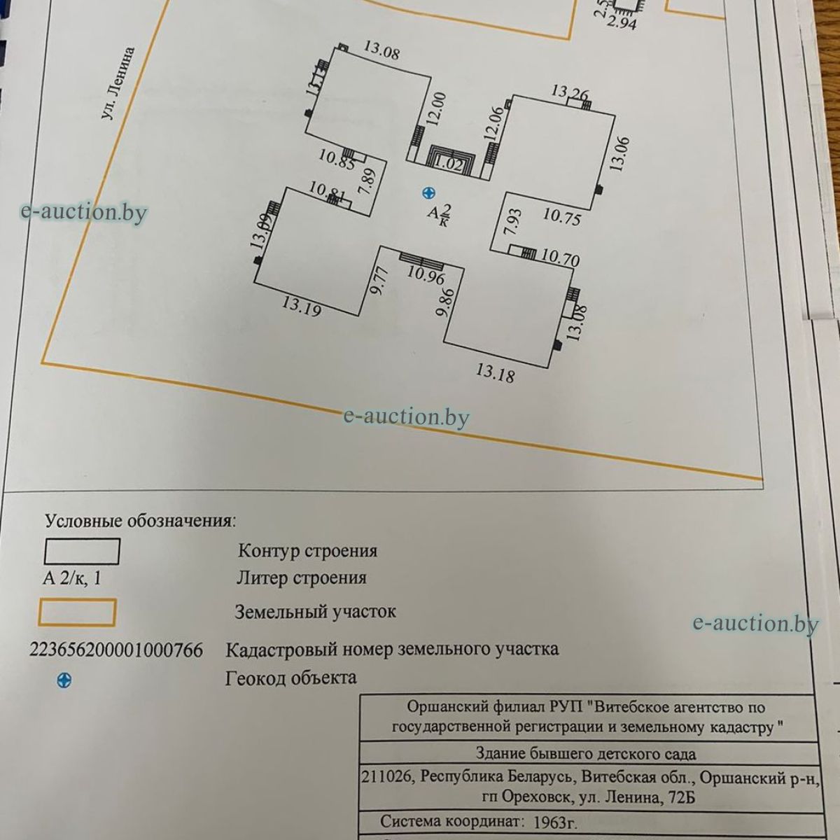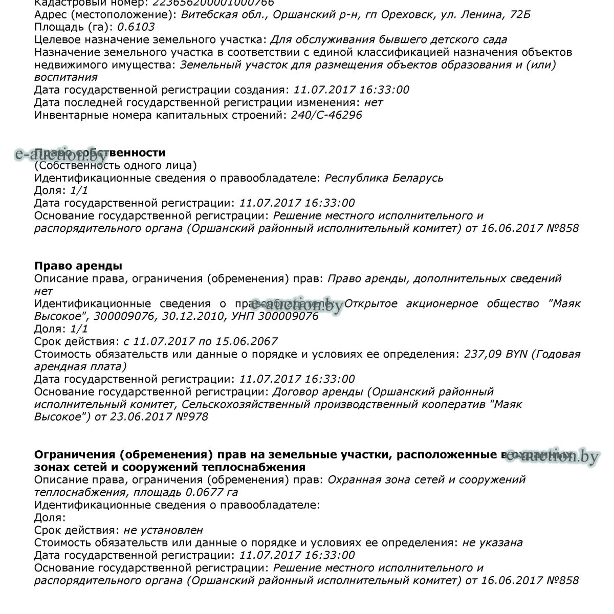 | Местоположение имущества | Витебская область, Оршанский р-н, гп Ореховск, ул. Ленина, 72Б |