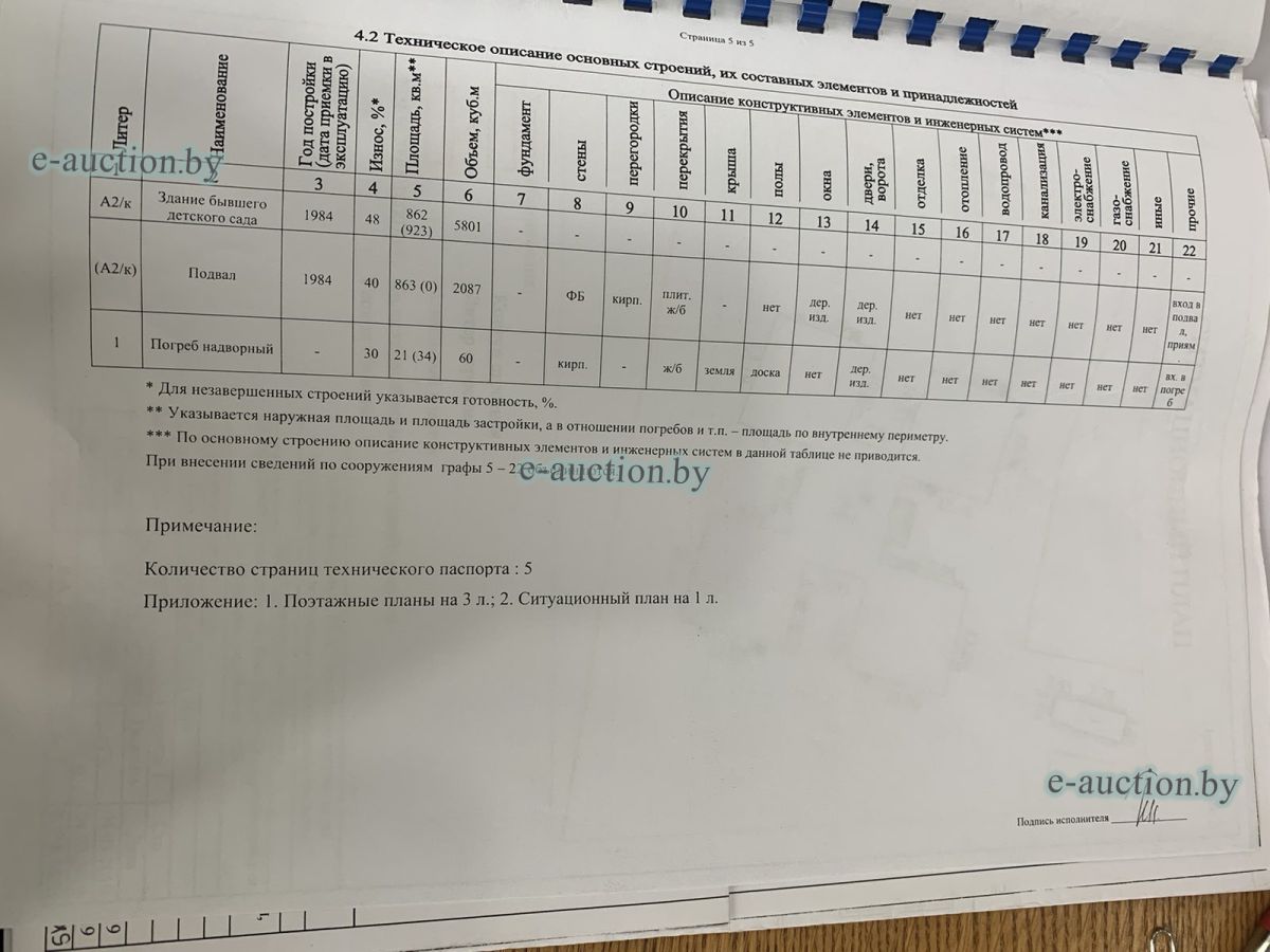 Сведения о капитальном строении из ЕГРНИ: Наименование: здание бывшего детского сада; Назначение: здание специализированное для образования и (или) воспитания; Составные части и принадлежности: подвал со входом, погреб надворный со входом. Расположено на земельном участке с кад. № 223656200001000766 площадью 0.6103 га (право аренды). Цена указана с учётом НДС. |