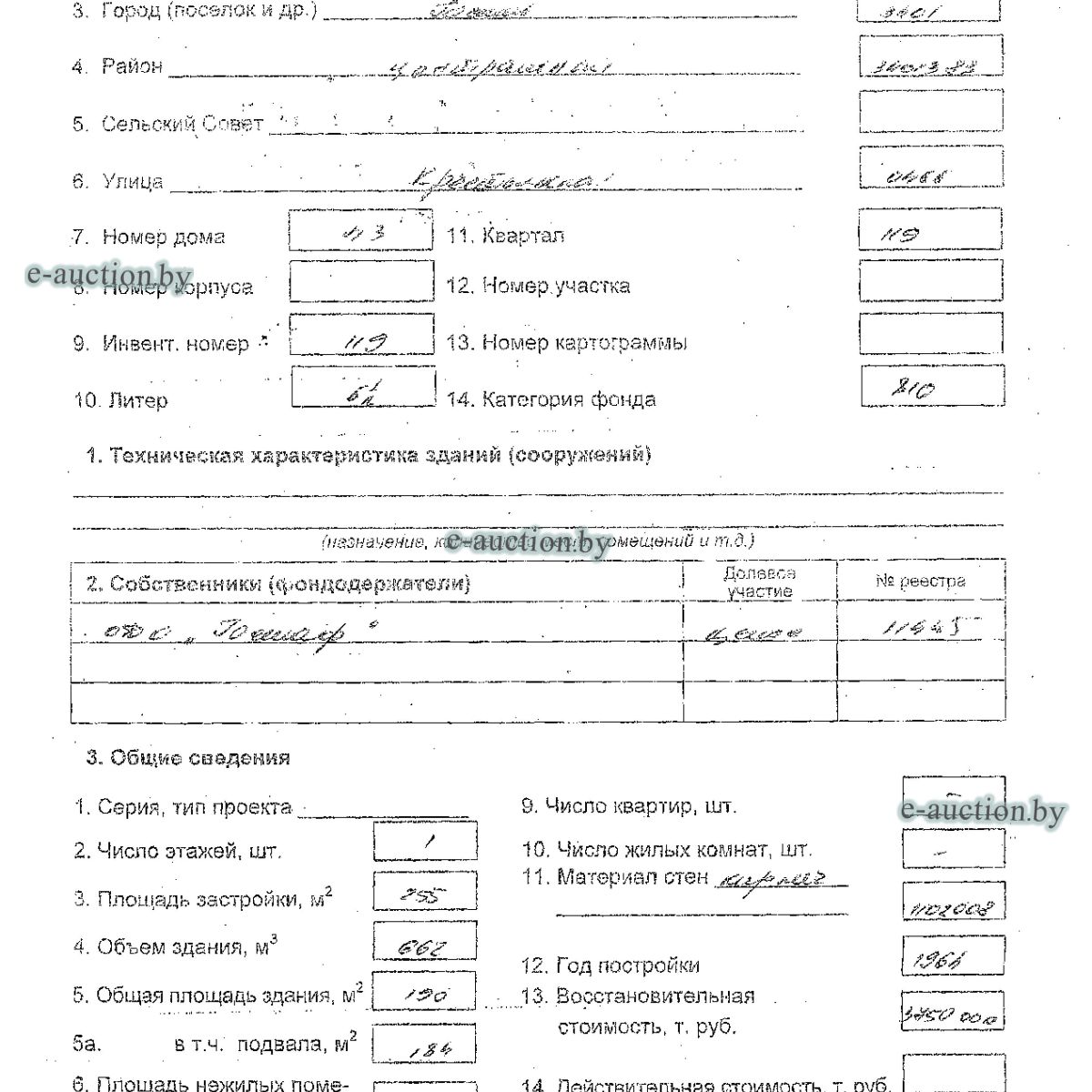 | Местоположение имущества | г. Гомель, ул. Крестьянская, д.43 |