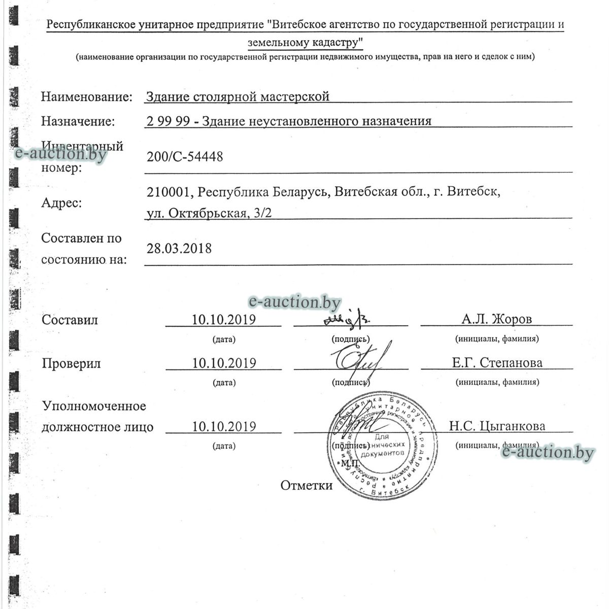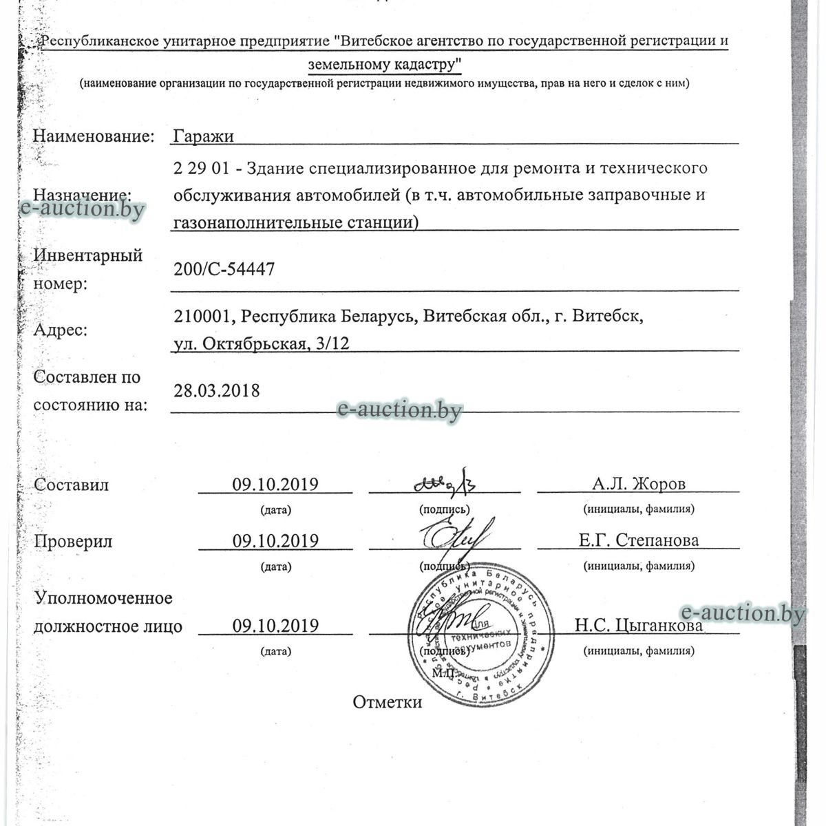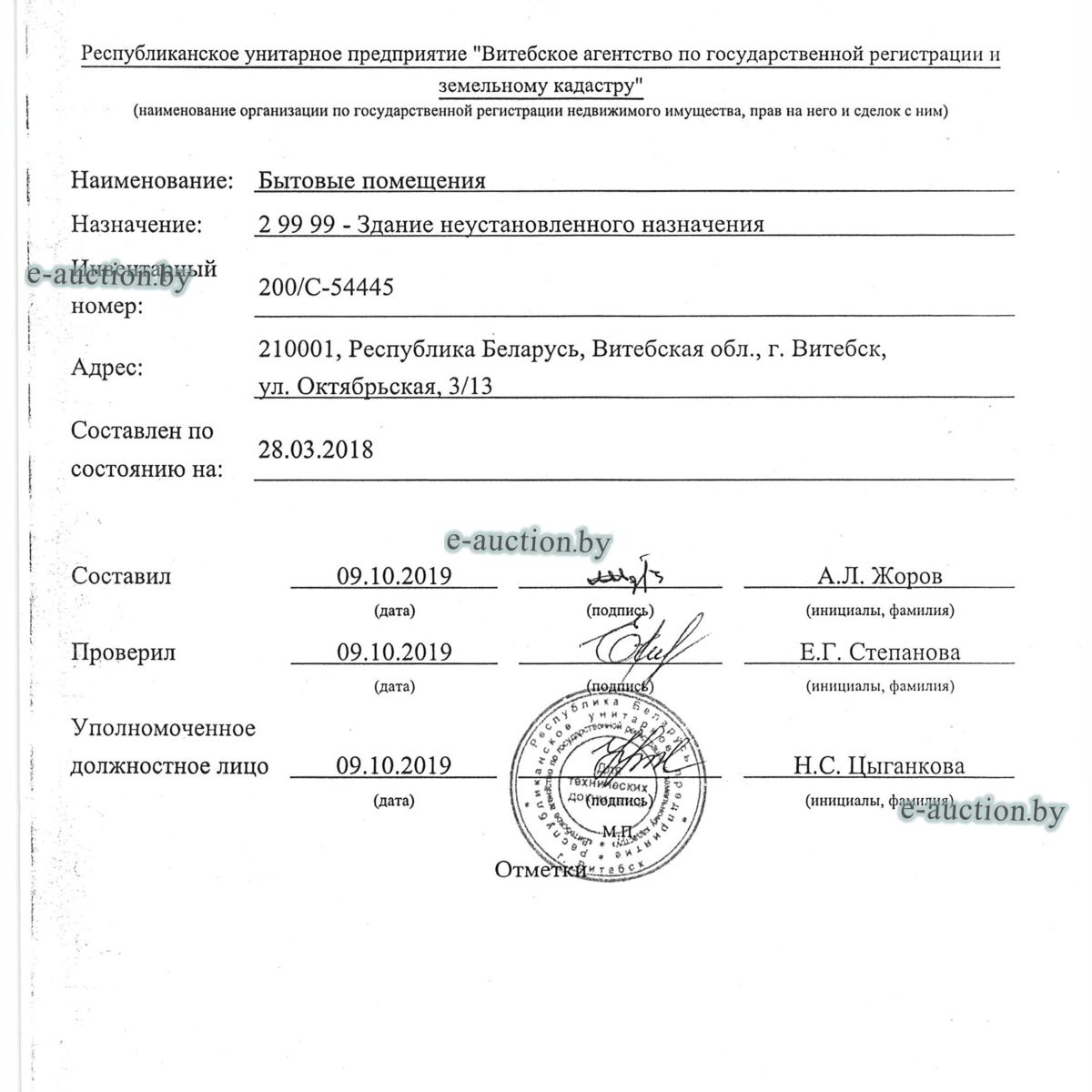 | Местоположение имущества | г. Витебск, ул. Октябрьская, 3 |