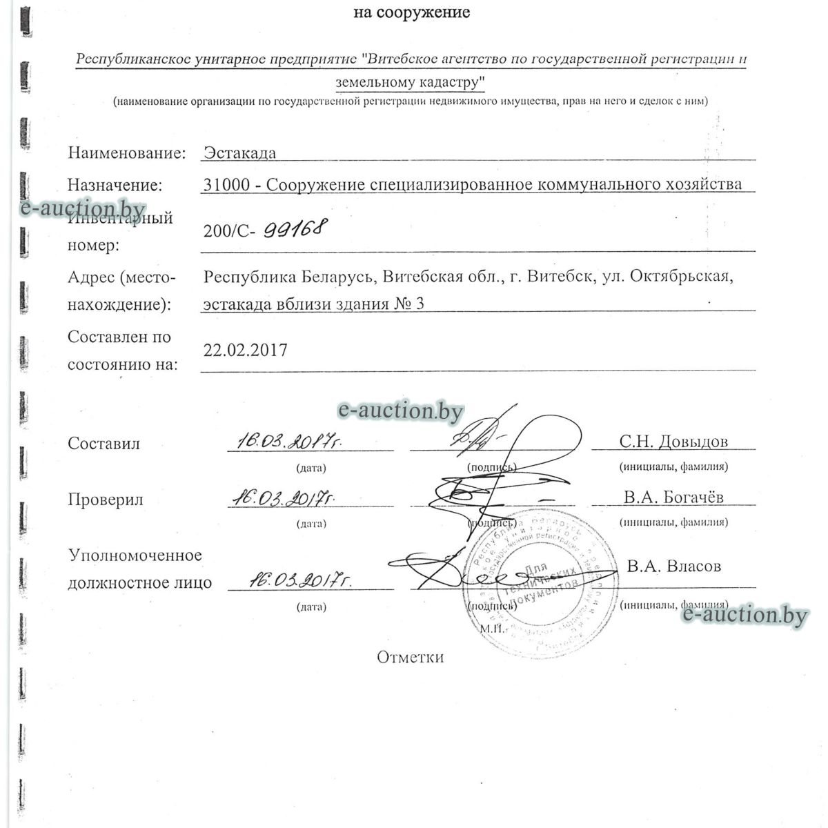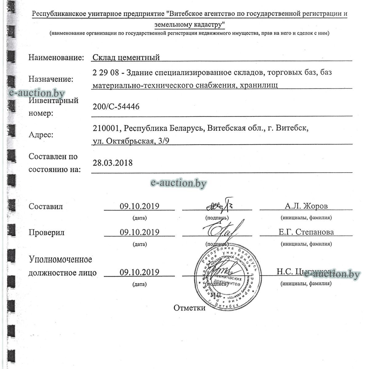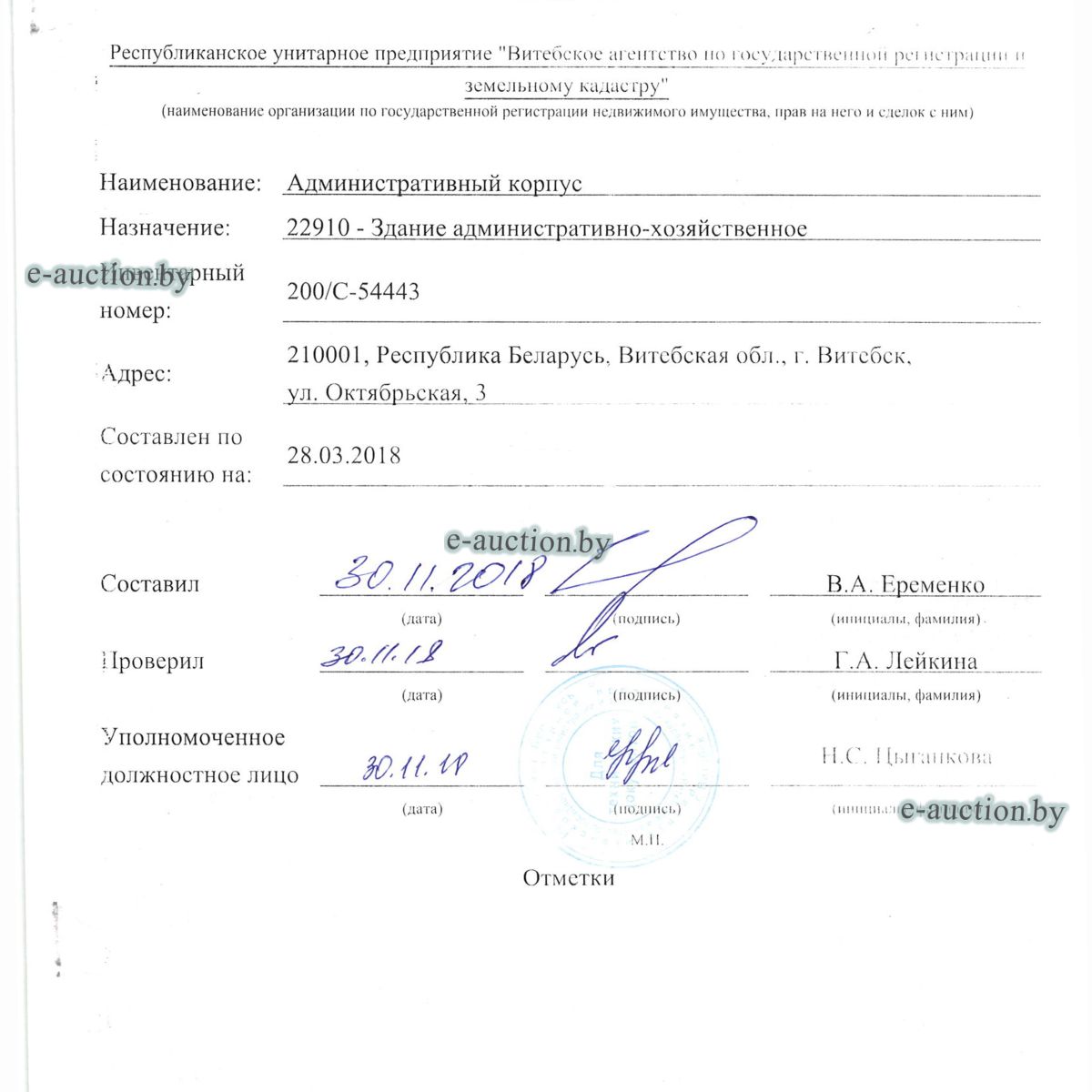 | Местоположение имущества | г. Витебск, ул. Октябрьская, 3 |