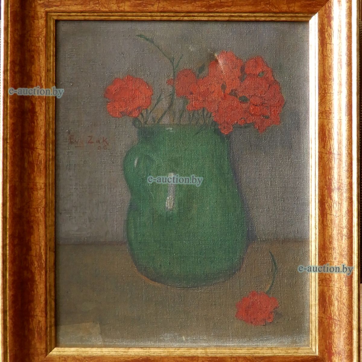 Живописное произведение Зака Е. (1884 – 1926) «Букет цветов». 1906. Холст, масло. 35х27 см. Вверху справа травматическое повреждение холста. |