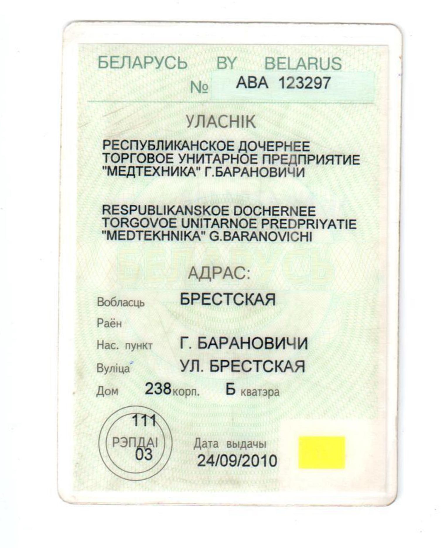 | Адрес | Брестская область, г. Барановичи, ул. Брестская, дом 238Б |
