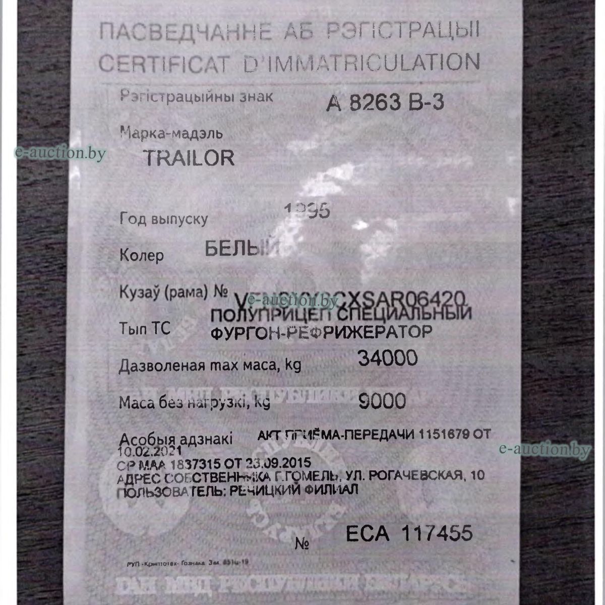 | Адрес организатора аукциона | 246007, г. Гомель, ул. Троллейбусная, 6 |