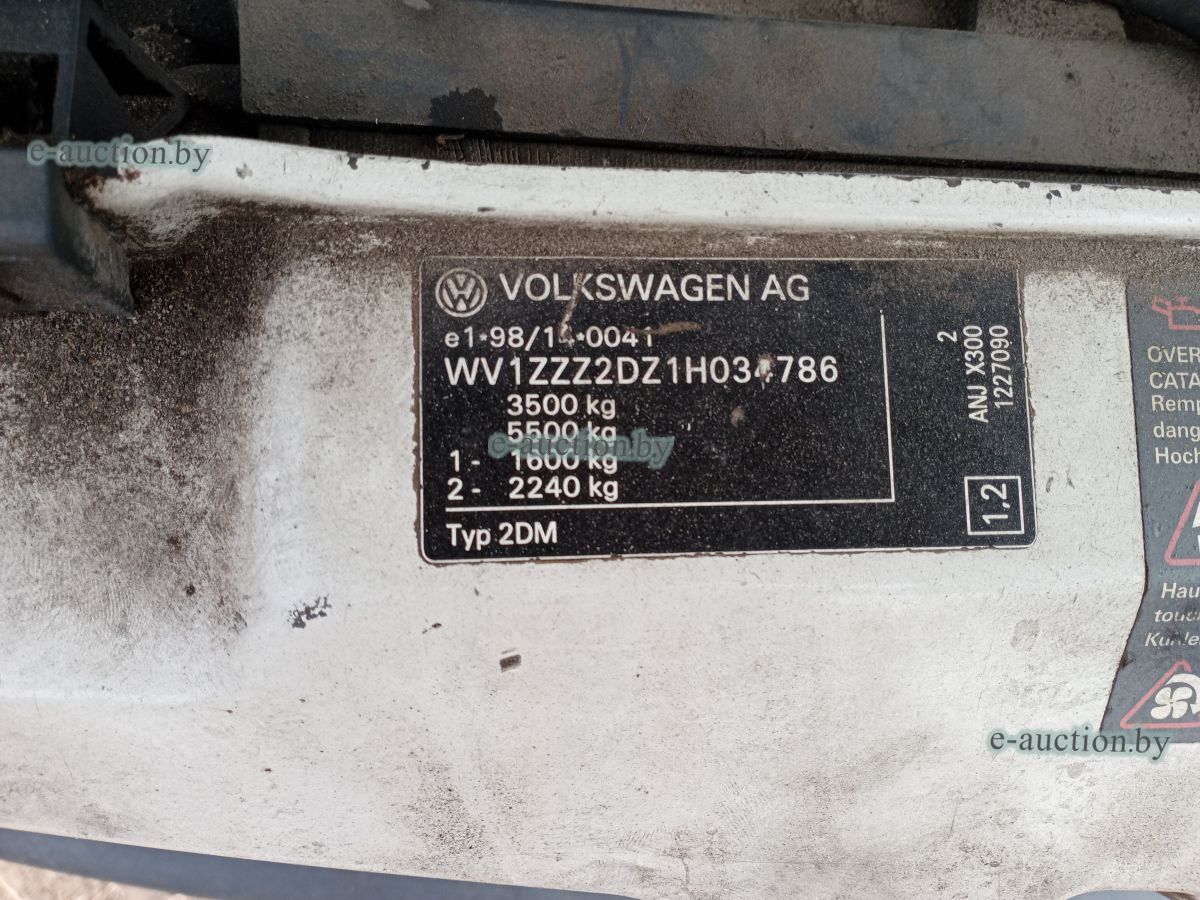 Регистрационный знак АК 7432-6 Кузов (рама) №WV1ZZZ2DZ1H034786 |