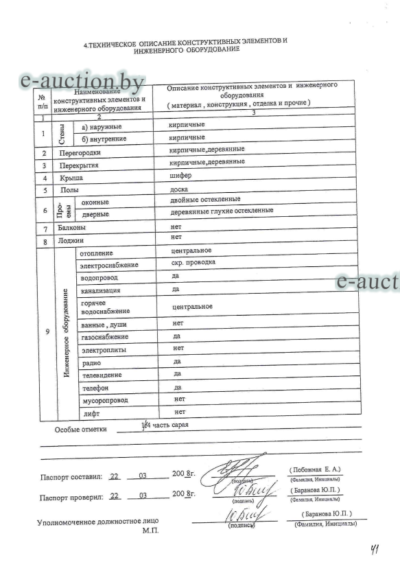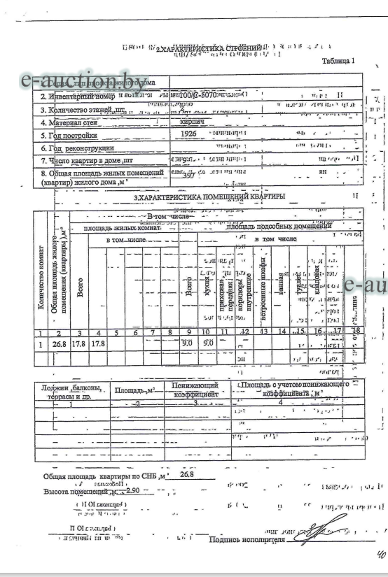 Сведения об изолированном помещении или машино-месте: Наименование: Квартира №4; Назначение: Квартира; Право собственности: 1/2 доля Гражданин Республики Беларусь; Примечания: Квартира № 4 состоит из одной жилой комнаты, кухни, 1/14 части сарая. Общая площадь жилого помещения - 26,8 м. кв. Жилая площадь - 17,8 м. кв. Общая площадь квартиры по СНБ - 26,8 кв.м. |
