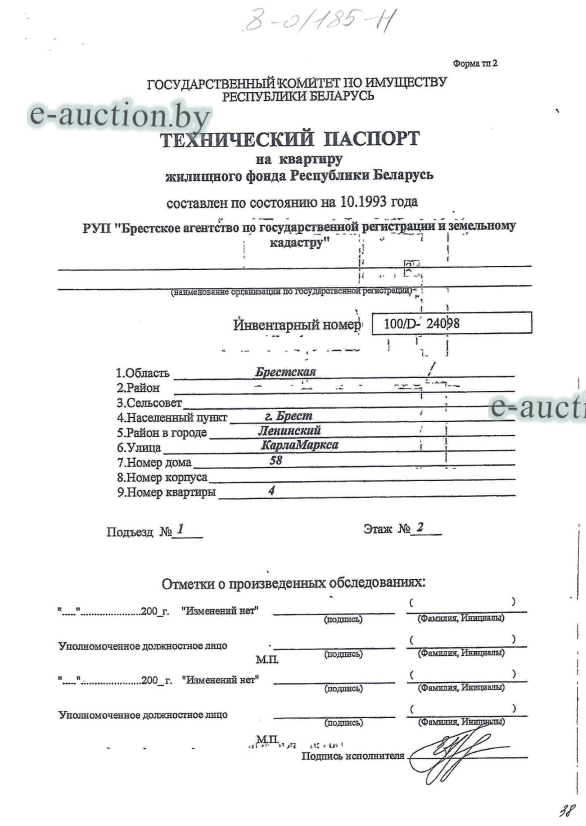 | Местоположение имущества | г. Брест, ул. Карла Маркса, 58-4 |
