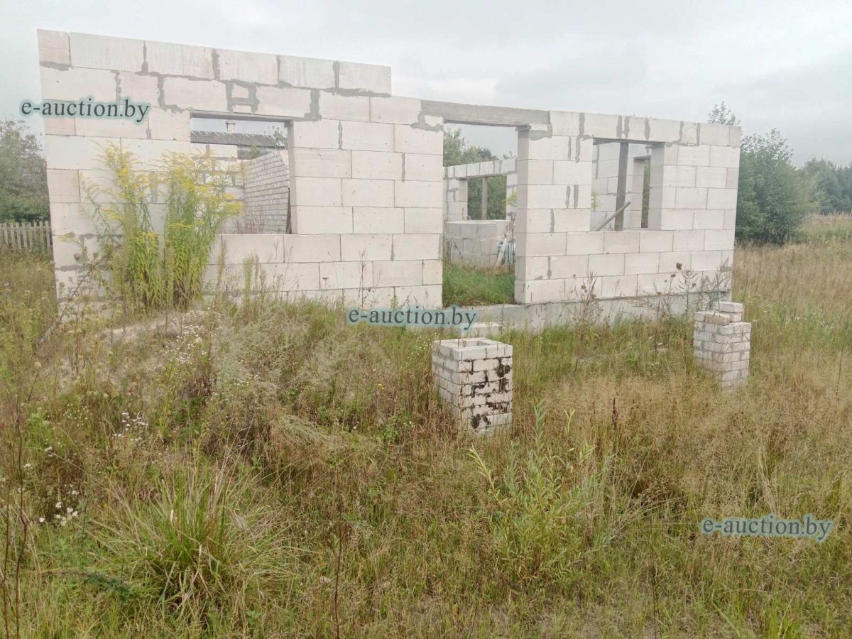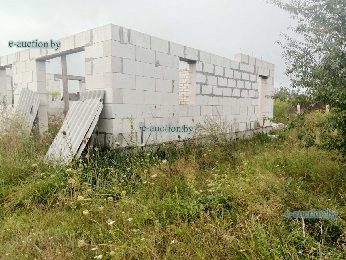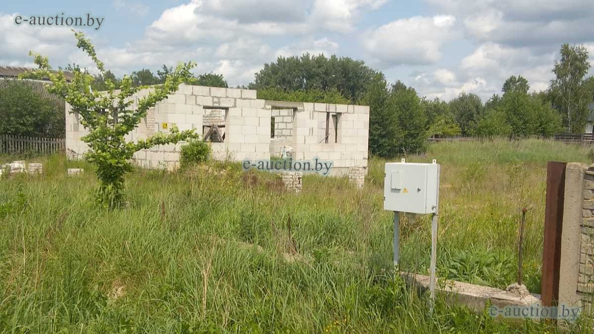 Лот представляет собой объект недвижимости в составе капитального строения и земельного участка. Сведения о капитальном строении: Наименование: Незавершенное законсервированное капитальное строение (согласно ведомости технических характеристик наименование объекта - Незавершенное незаконсервированное капитальное строение); Назначение: Здание неустановленного назначения; Право собственности: Гражданин Республики Беларусь. Сведения о земельном участке: Площадь: 0.2163 га, Кадастровый номер: 121283700601000377; Право собственности: Гражданин Республики Беларусь. Примечания: Наружная площадь - 81 кв.м. Готовность строения - 8 %. |