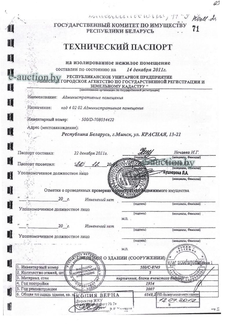 | Местоположение имущества | г. Минск, ул. Красная, 13-21 |