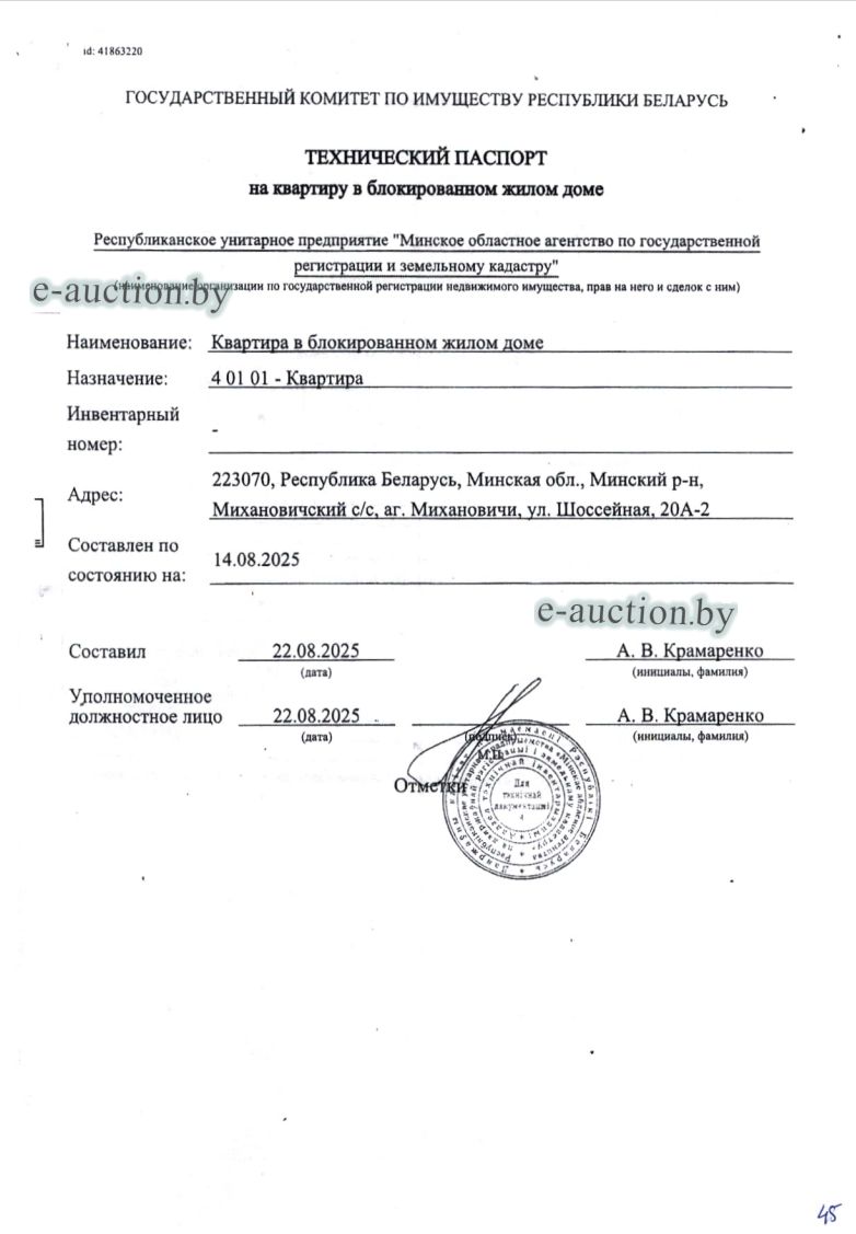 | Местоположение имущества | Минская область, Минский р-н, Михановичский с/с, аг. Михановичи, ул. Шоссейная, 20А-2 |