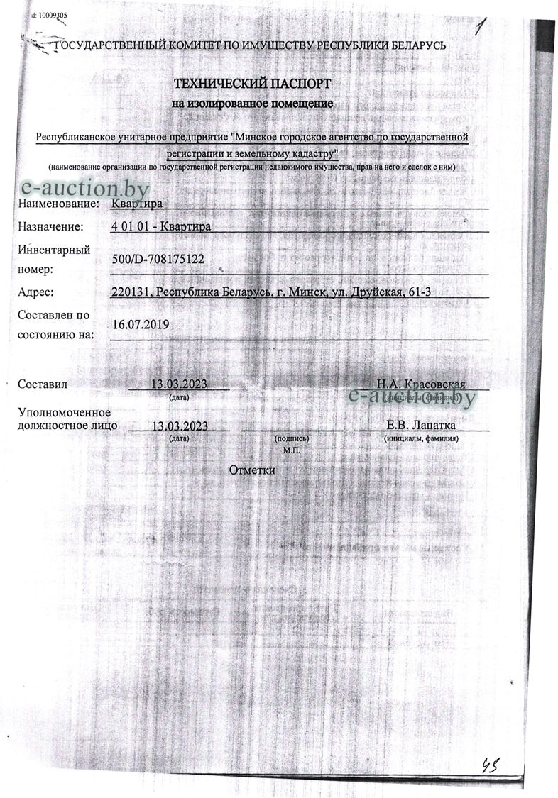 | Местоположение имущества | г. Минск, ул. Друйская, 61-3 |