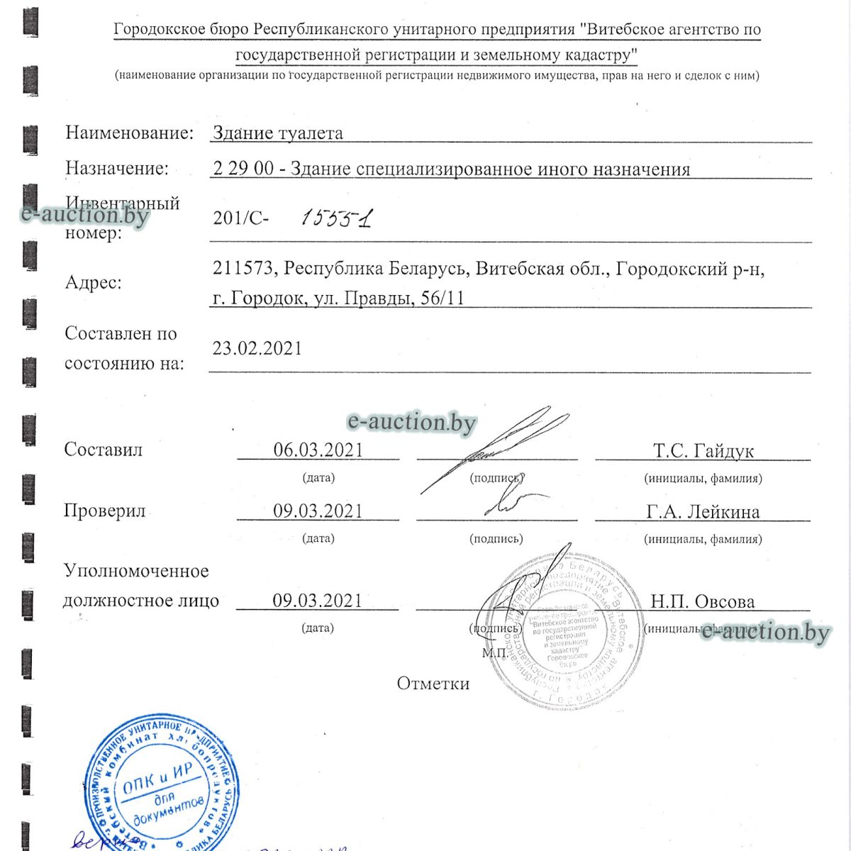 | Реквизиты | ОПИ УПИ главного управления юстиции Витебского облисполкома, УНП: 300002505, р/c BY73AKBB36429030010372000000 в ОАО «АСБ Беларусбанк», БИК AKBBBY2X |