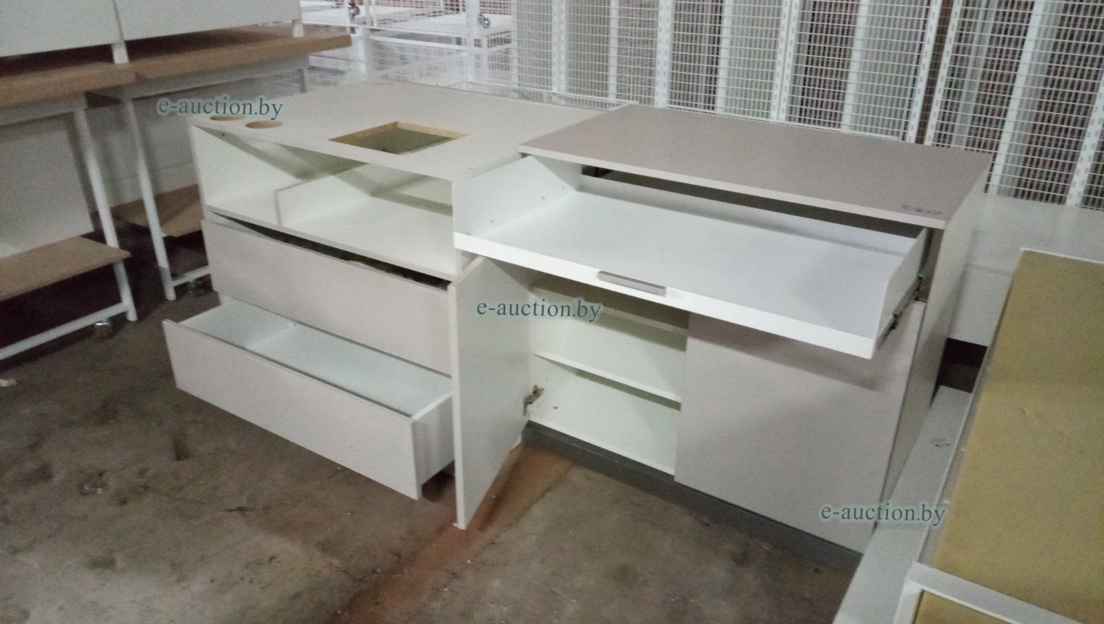 | Б/у, в комплекте: 4 ящика с выдвижными полками (100*80 высота 90 см); 4 ящика с дверками с полками внутри (100*60 высота 90 см); 2 металлические полки (40*55 см); 2 металлические полки (60*65 см); каркас стеллажа на колесиках 4 шт. (высота 120 см, ширина 90 см). | |